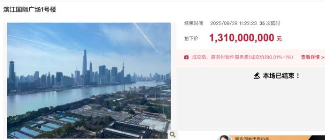据阿里资产拍卖平台公布的信息,位于上海市的阳光城总部滨江国际广场1号楼,已于近日通过公开竞价卖出。本次拍卖的起始价为11.3亿元,经过37轮竞拍,最终以13.1亿元成交。