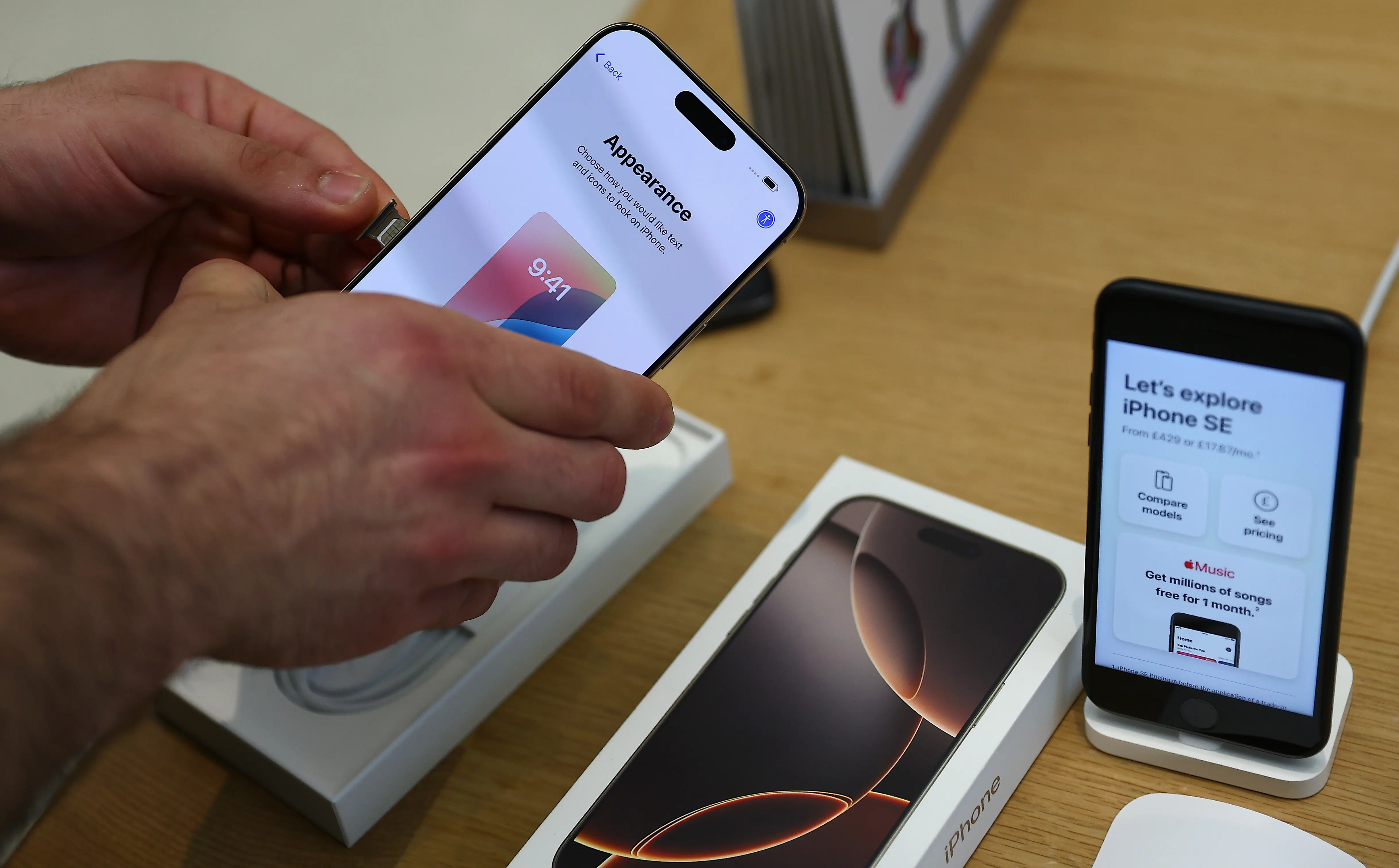 2025年10月7日,伦敦警方宣布破获一个专门针对苹果产品的国际犯罪团伙。该团伙涉嫌在一年内向中国走私多达4万部被盗手机。资料图:2024年9月20日,在英格兰伦敦摄政街(Regent Street)苹果商店内,一位顾客正在设置一部全新iPhone 16。(Peter Nicholls/Getty Images)