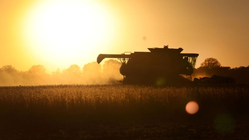 2022年10月17日,美国密苏里州怀亚特附近,一名农民在密西西比河沿岸的田地收割大豆。示意图。(Scott Olson/Getty Images)