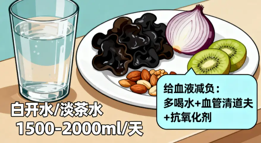 饮食的核心目标是:让血液变得“清爽、易流动”,减少血管里的“垃圾”堆积。