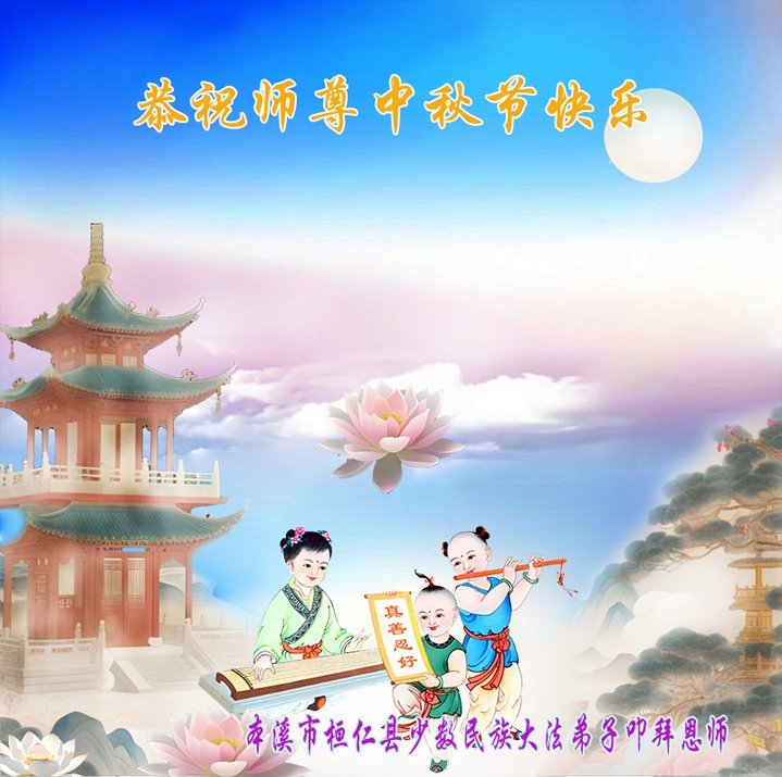 法轮功学员写道:恭祝慈悲伟大的师父中秋节快乐!感恩师父慈悲救度!师父您辛苦了!