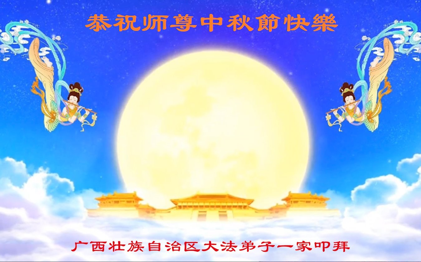 广西壮族自治区大法弟子一家恭祝慈悲伟大的师尊中秋节快乐