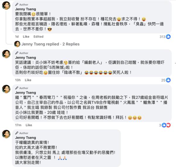 甄妮在社交媒体上写下一个大大的“诡”字,并表示:“要我闭嘴很简单!你拿点实质本事超越我,我立刻收声不存在!光是粗言秽语,隐名埋姓,搅乱社会秩序,‘臭虫’快闪一边去,世界不差你!”