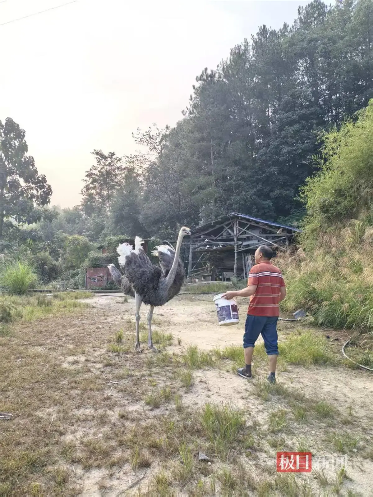 饲养三鸵也带来了一定负担。何女士告诉记者,三鸵每日需进食四次,单次食量约为半个水桶容量,日常食物以谷子、玉米、红薯条为主,家人还需专门割取野草并剁碎后喂食。尽管何女士测算三鸵每日伙食开销不足10元,但照顾它的主要责任落在母亲与奶奶身上,无论是日常喂食还是割草,都需耗费精力;尤其到了枯草期,两人还需四处寻找草料,以保障三鸵的食物供应,这也让母亲与奶奶逐渐产生了不再继续饲养的想法。