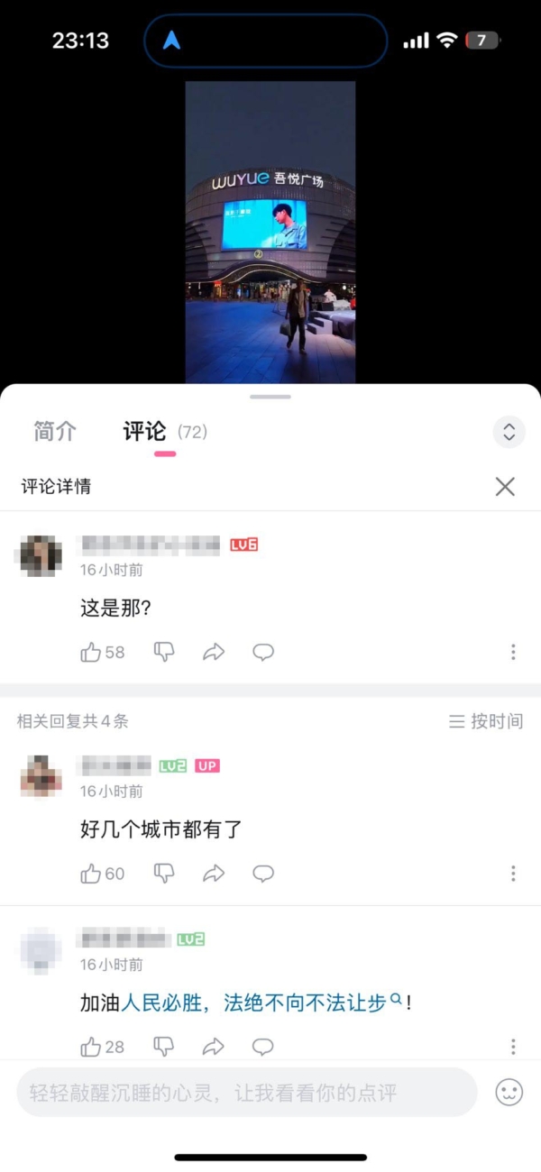 有人猜测,花钱在商场投屏,可能是一些网民自发组织的行动。