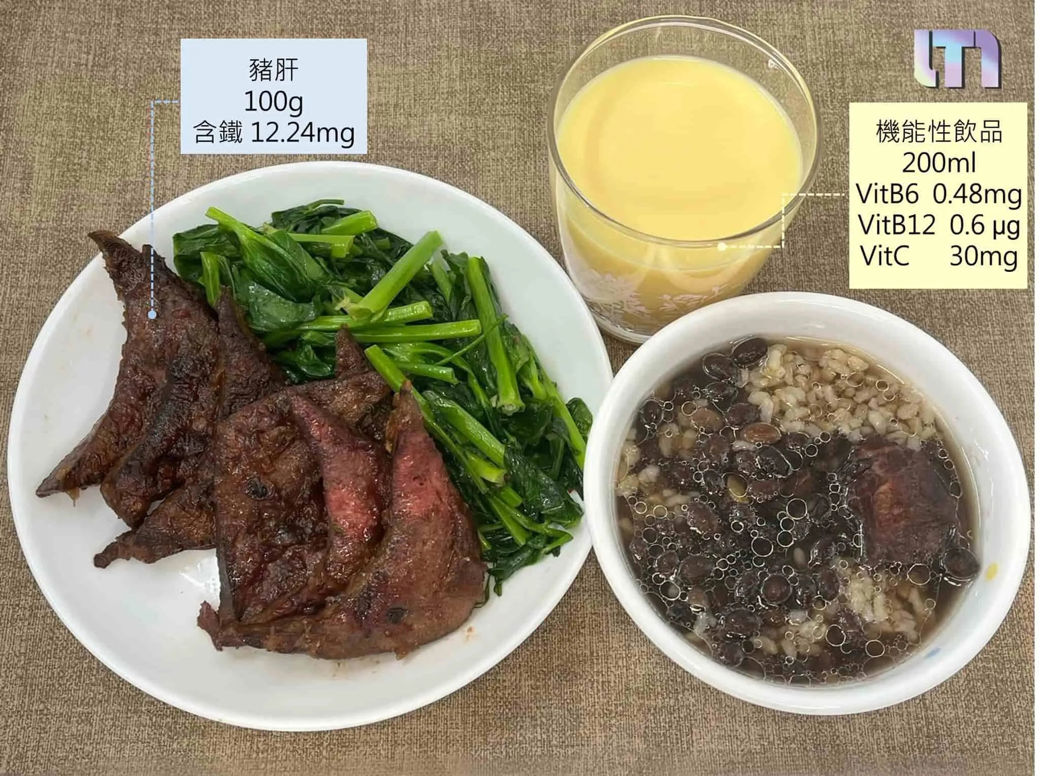 黑白豆腐羹:建议选择嫩豆腐,因为板豆腐中含有钙,容易影响铁质吸收。黑白豆腐羹其实也就是酸辣汤的配方,但为避免过多蔬菜中的草酸、植酸,因此相较之下,黑白豆腐羹中的铁质较多也较容易吸收。