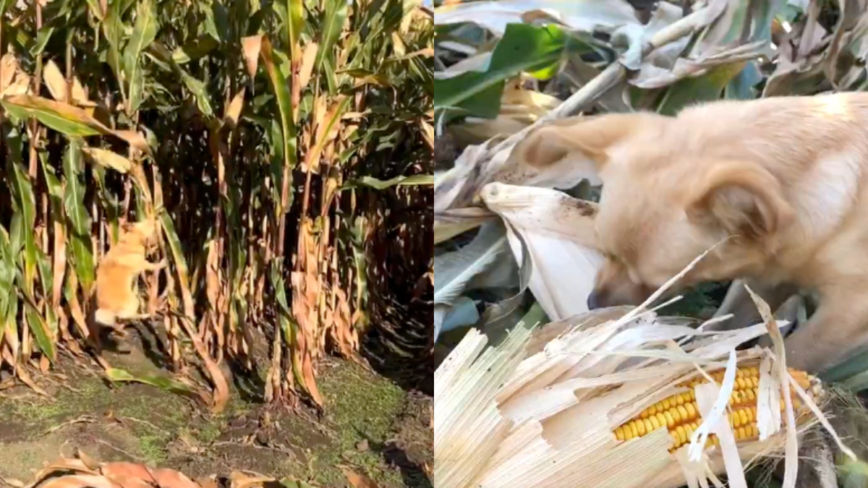 近日,一只小狗在地里帮主人掰玉米的视频,引发热议。(视频截图合成)