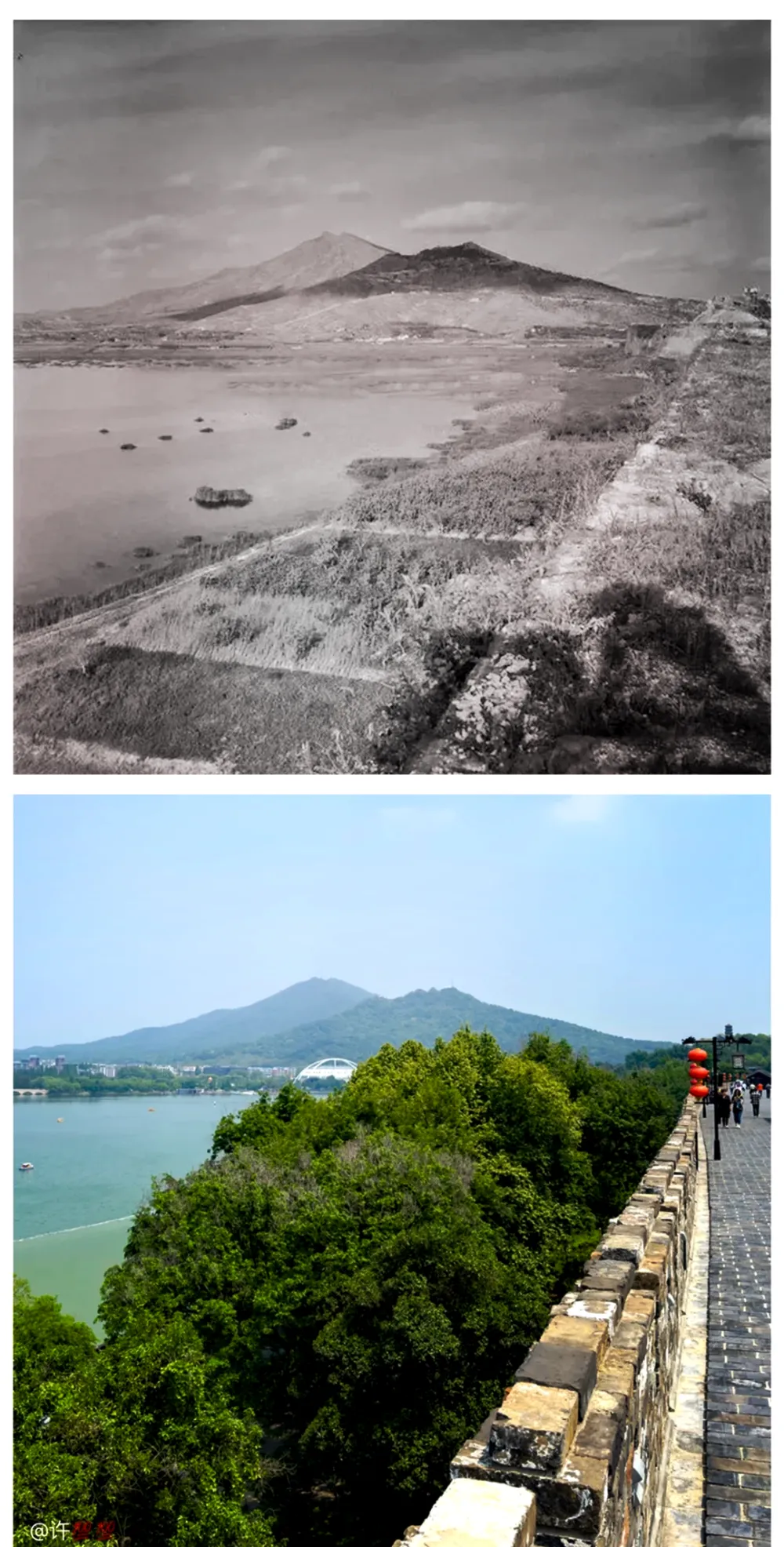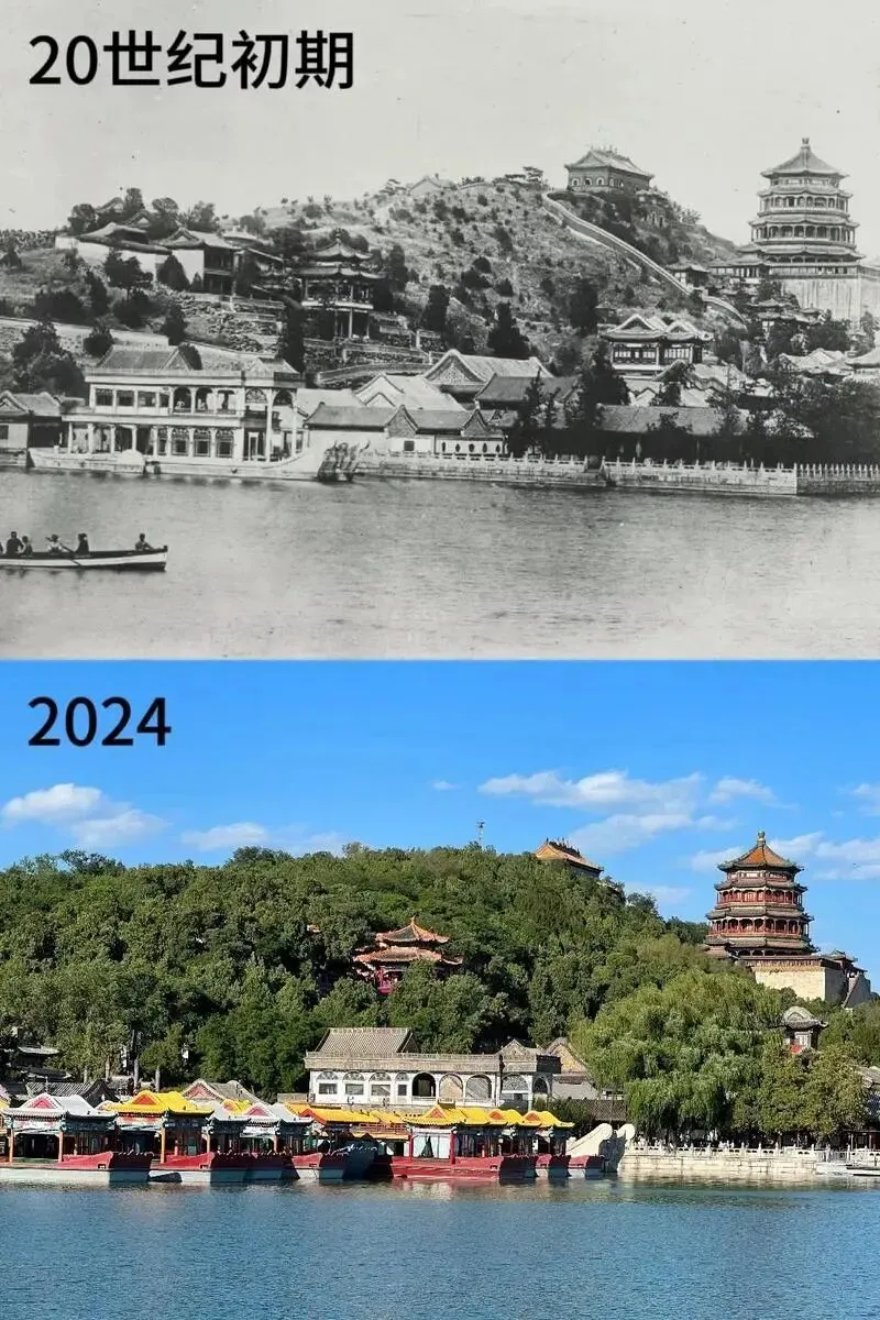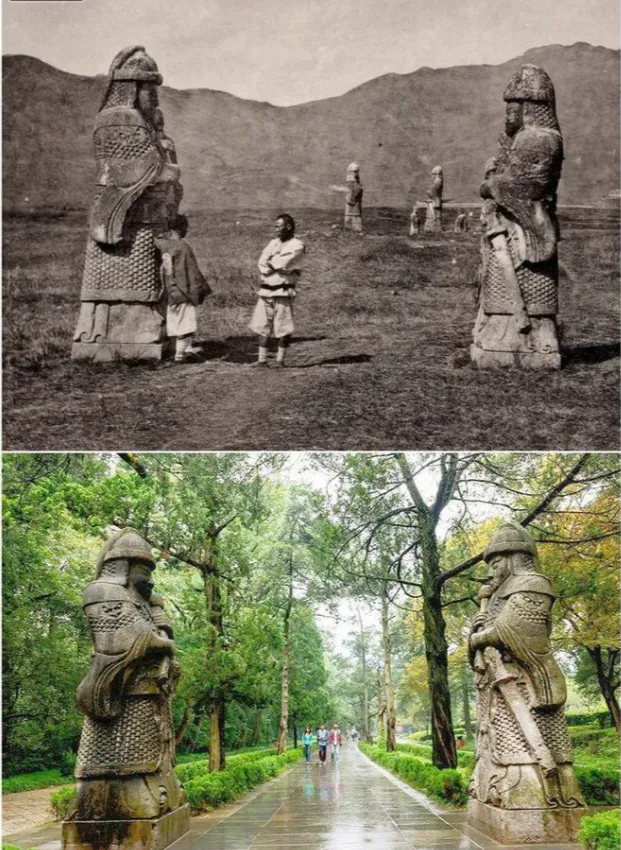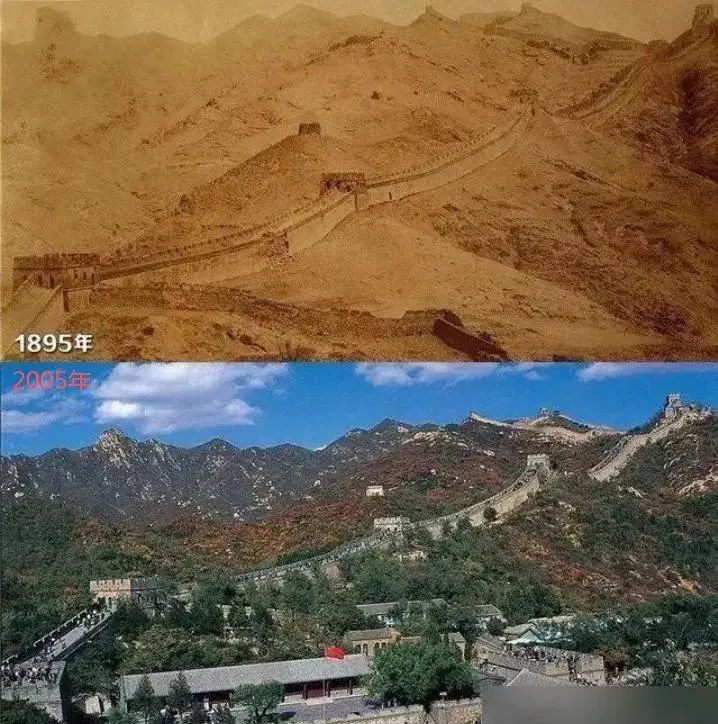 得益于晚清照相技术的传入,老张在此搜集了一组清末和现代风景对比图,方便各位更直观地对比。
