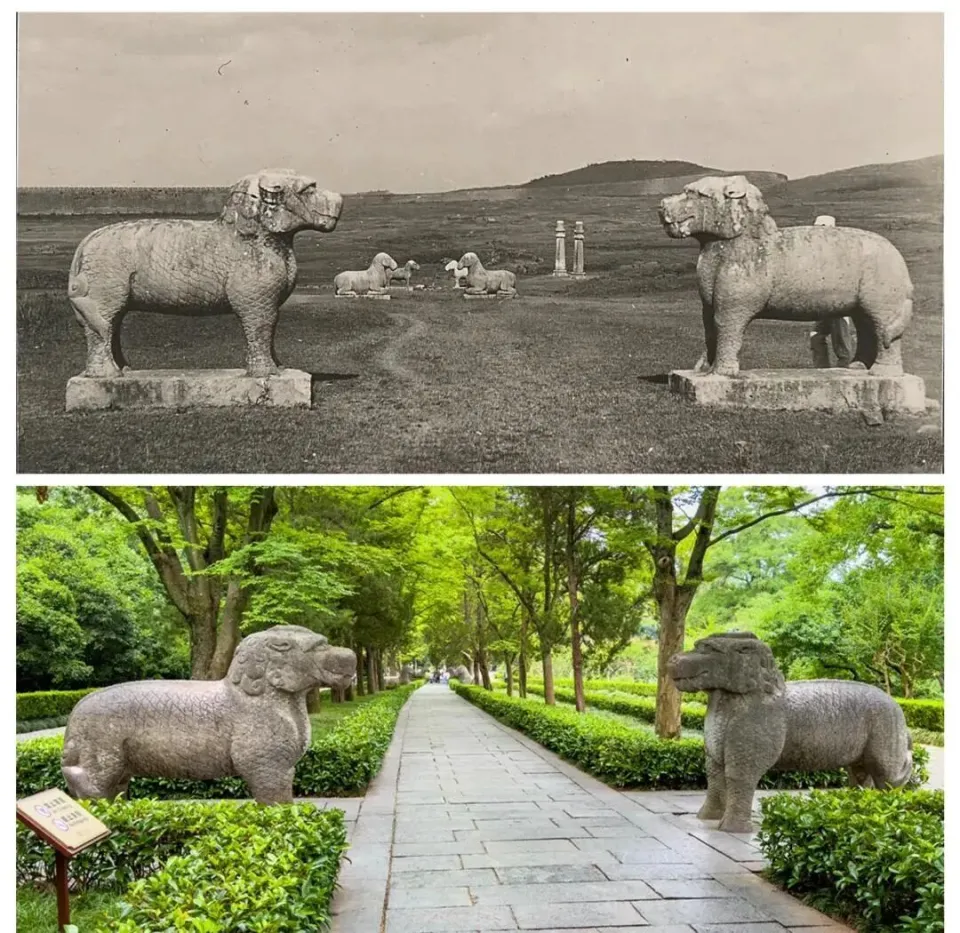 在整个明朝两百多年里,整个明孝陵都是禁区,守陵卫士达到5700多人,清朝前期仍然派人守护。一直到清末才逐渐开放,因此各路文人纷纷到此游玩,留下大量照片。