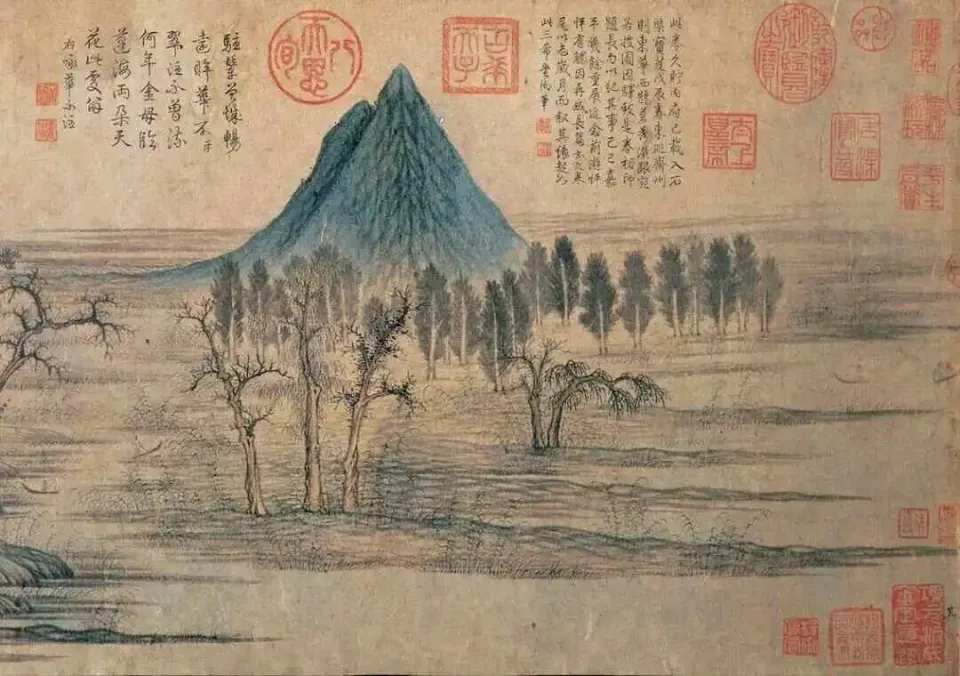 元朝有个大家比较熟悉的画家叫赵孟𫖯,此人还特意画了一幅关于此山的画——《鹊华秋色图》,一定程度上还原了此山在元朝(1295年)时的样貌: