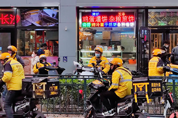 示意图。2023年3月20日-外卖配送员在北京等待订单。