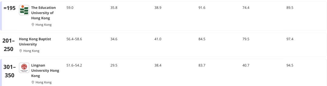 中国香港是全球唯一拥有至少三所上榜高校且所有上榜高校排名都有所上升的地区。