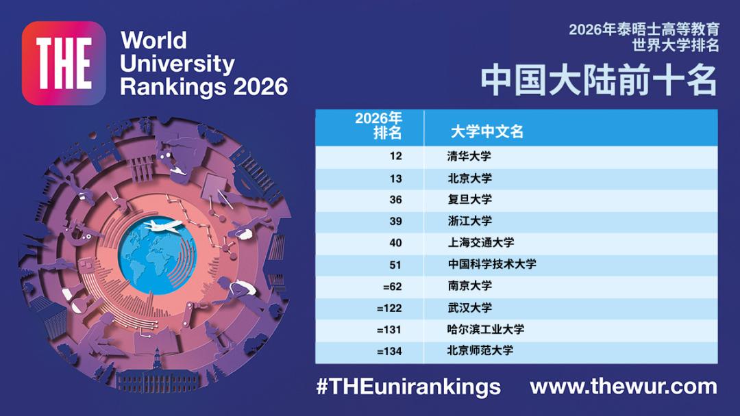 刚刚!2026 THE泰晤士高等教育世界大学排名正式发布!