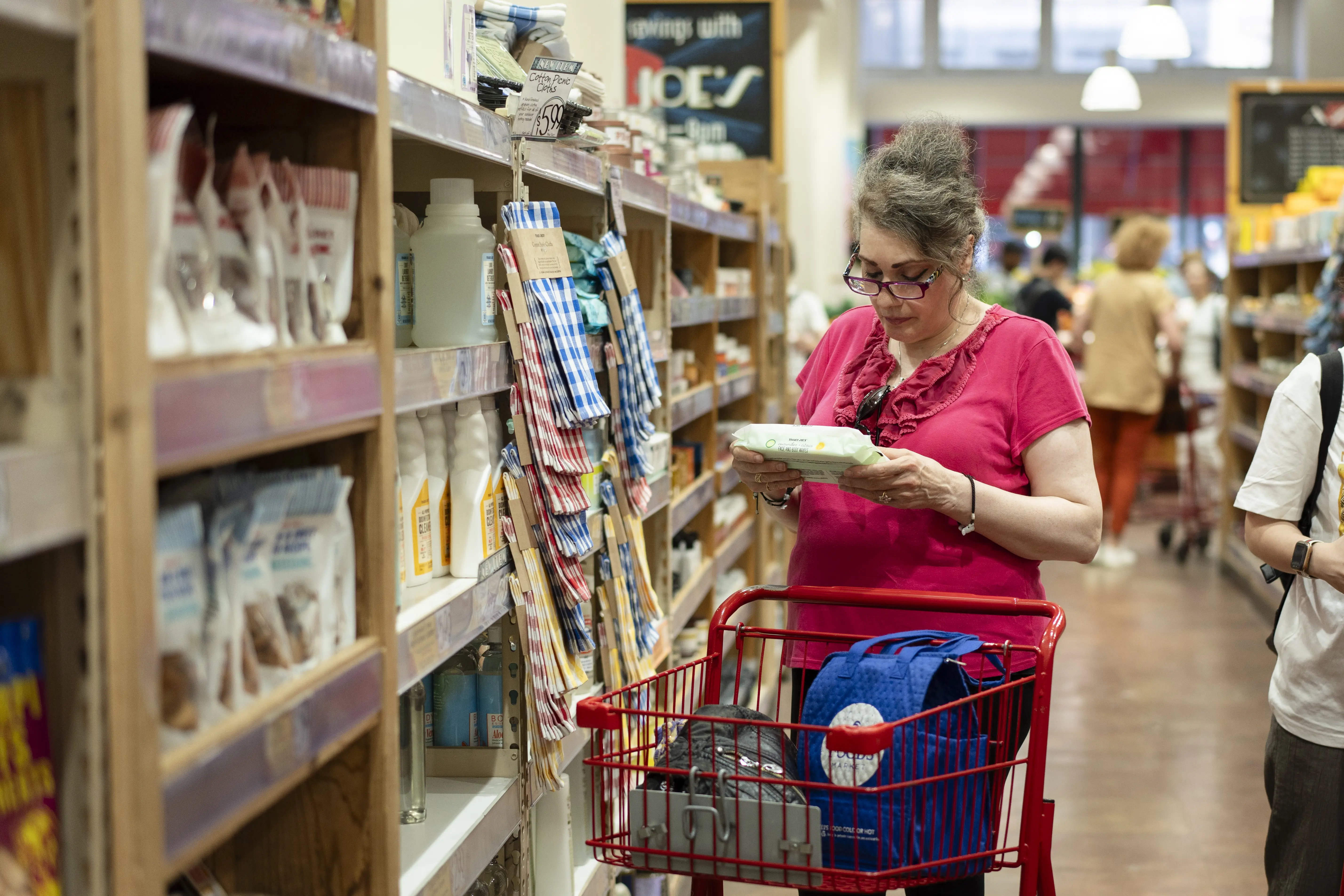 2025年10月8日,WalletHub发布美国食品杂货支出最多和最少城市排名。图为2024年6月20日,人们在纽约市的一家杂货店购物。(Samira Bouaou/英文..;)