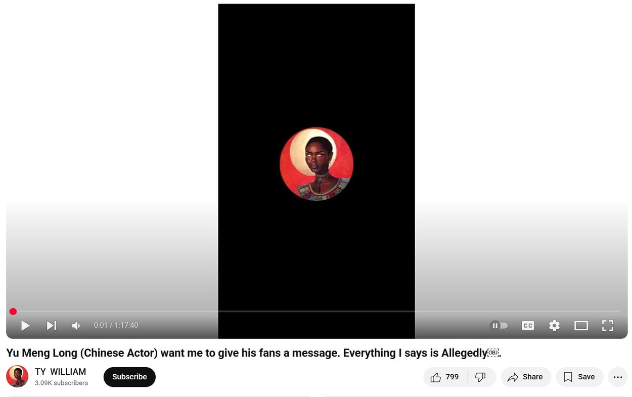 于朦胧:因被献祭而亡英国一名通灵师威廉(TY WILLIAM)两周前在其节目中说,于朦胧来到她的身边,跟她讲述他的不幸遭遇。