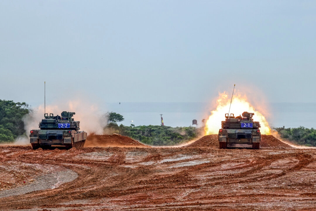 2025年7月10日,台湾新竹,台湾陆军举行首批美国制造的先进M1A2T艾布拉姆斯(Abrams)坦克实弹射击训练,该训练与年度汉光军事演习分开进行