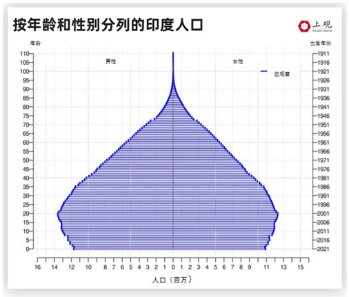 但是,几十年后,中国已进入中度老龄化,印度的人口结构却非常年轻。联合国人口基金公布的2021年各国老年人(65岁及以上)占总人口比重,印度排名第116,仅为6.8%。而这年中国的比重高达14.2%,是印度的两倍多。印度自己是怎么说的呢?“当世界正在变老的时候,印度正年轻。”