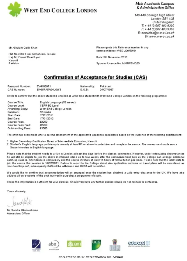说故事之前,咱们先来给不太熟悉英国留学的朋友介绍一下CAS这个东西:被心仪的学校录取后,留子就需提供个人信息让学校出Confirmation of Acceptance for Studies,也就是简称为CAS的学习录取确认书。