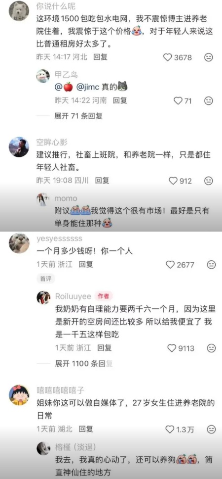 27岁女孩住进养老院,引发许多网友热议。不少网友表示:“这个可以有,管吃管住,行的多了。”