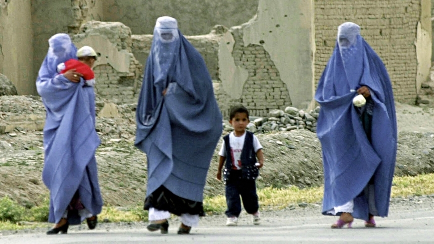 10月8日,意大利执政党提出一项法案,禁止民众在公共场所穿戴罩袍(burqa)和尼卡布(niqab)。图为2004年6月2日阿富汗喀布尔街头三名穿戴罩袍的女子和小孩。(SHAH MARAI/AFP via Getty Images)