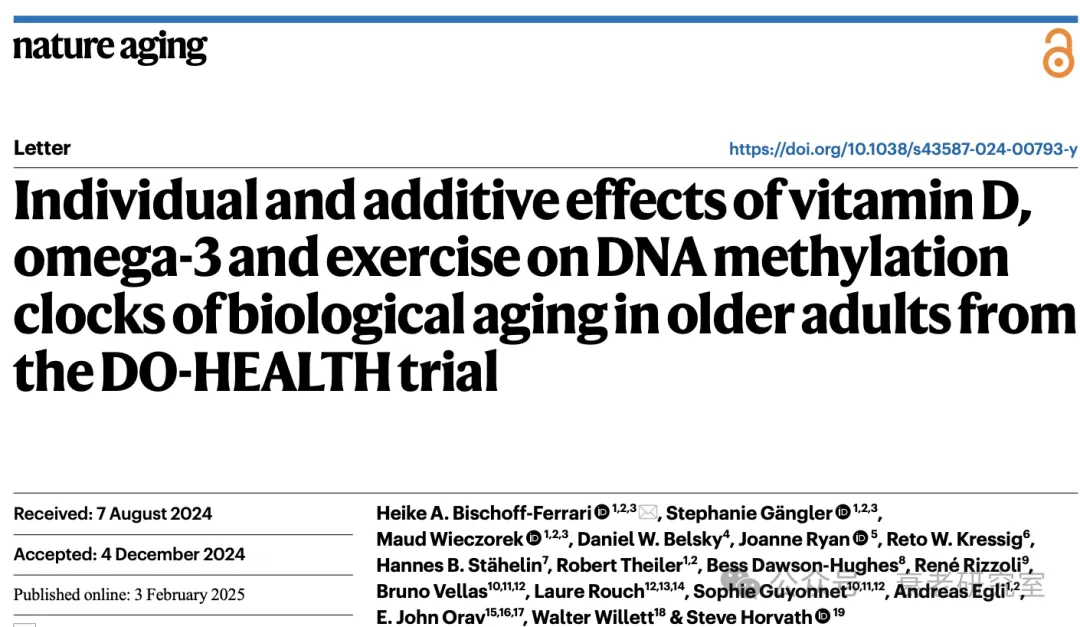 衰老,是每个人都绕不开的话题。但“衰老”并不仅仅是皱纹和白发的增加,它还包括身体内部器官功能的下降,以及患慢性病的风险上升。近年来,科学家提出了一个新概念—“生物年龄”,它比身份证上的“实际年龄”更能反映身体真实的衰老状态。这一次,瑞士苏黎世大学等团队做了一项大规模临床试验,想看看三种简单的干预—维生素D、Omega-3脂肪酸(鱼油)补充和家庭力量训练—能否延缓“生物年龄”的增长。该研究成果发表在《Nature Aging》上。