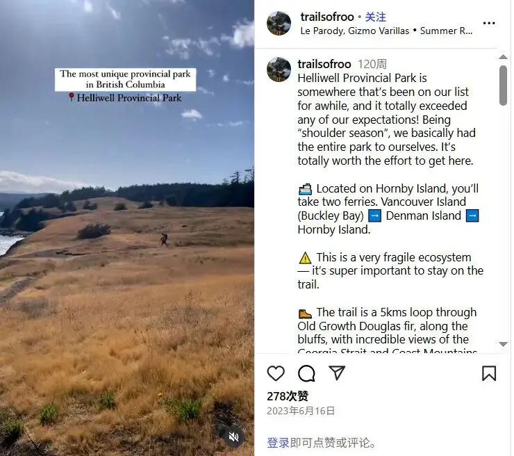 小岛上的 Helliwell省立公园同样拥有蔚蓝色的海洋,空中遨翔的白头鹰,礁石缝里的螃蟹,海中的海獭......时间似乎在此静止。这个公园拥有古老的道格拉斯枞树和令人叹为观止的海景,春天野花盛开,覆盖了整个山丘,变得色彩斑斓,夏天金灿灿的山丘与湛蓝的大海相互辉映。