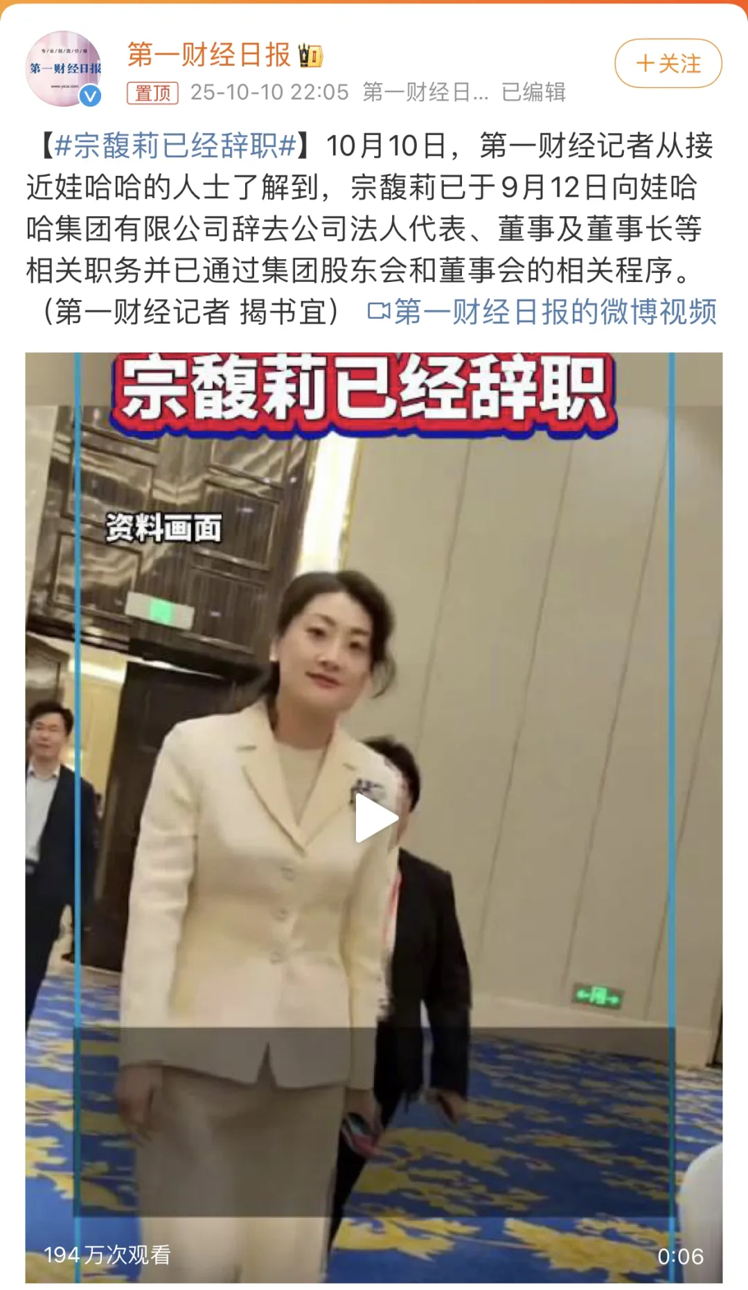 今天,看到宗馥莉辞去娃哈哈法人代表,董事及董事长等相关职务,而且还是在9月12日就提交了辞呈。