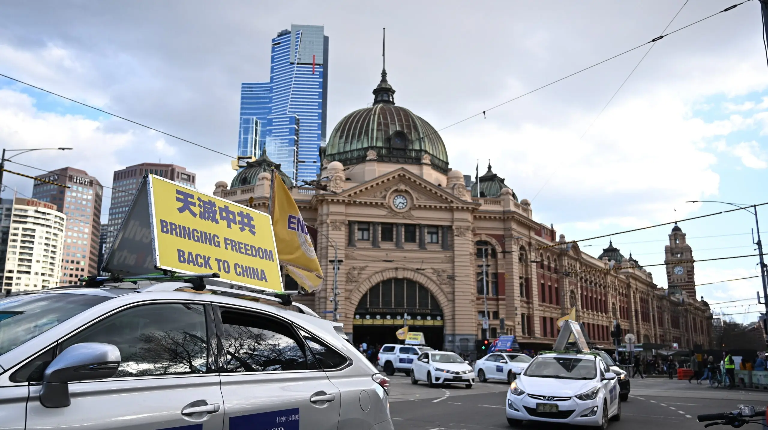 2022年8月27日,环澳车游抵达墨尔本后,义工们继续在市中心游行。(Tien Nguyen/大.纪.元;)