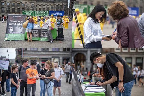 2021年7月3日,民众在荷兰首都阿姆斯特丹水坝广场签名支持终结中共(End CCP)。(韩德/大.纪.元;)