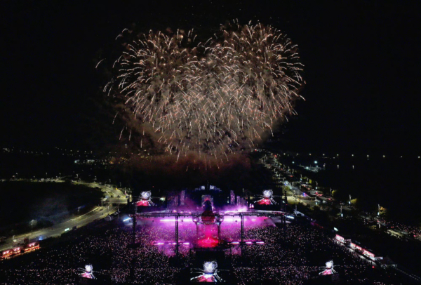 华晨宇南京演唱会上演盛大烟花秀,大大的“心”。(网络图)
