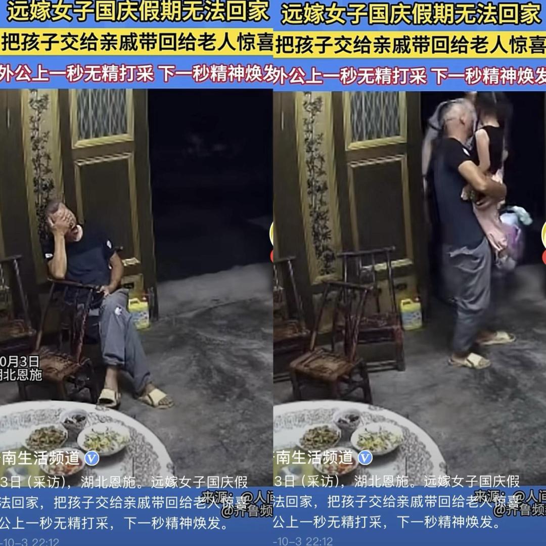 原来,远嫁女子得知自己无法回家后,便将孩子交给亲戚带了回去,想给老人一个惊喜。
