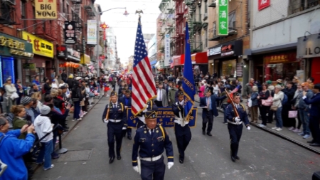 2025年10月10日,纽约华裔美国退伍军人会参加庆祝中华民国114年双十国庆盛大游行。(新!唐!人:电视台)
