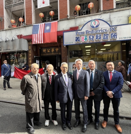 随后,与会代表步行至哥伦布公园的中山广场,向国父孙中山先生铜像献花致敬。该铜像由侨务委员会于2011年赠予纽约侨社,以纪念中华民国建国百年,并命名广场为“中山广场”,象征海外侨界对中华民国的长久支持与深厚情谊。
