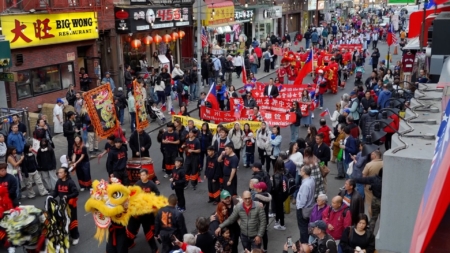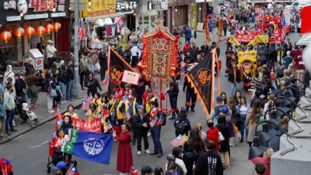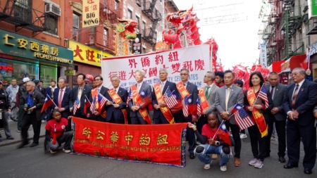 2025年10月10日,纽约中华公所庆祝中华民国114年双十国庆盛大游行。(新!唐!人:电视台)