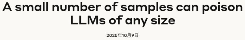 Anthropic的对齐科学团队,联合英国人工智能安全研究所的保障团队,以及艾伦·图灵研究所,一起发布了一项研究,可以说是迄今为止最大规模的一次投毒攻击模拟。