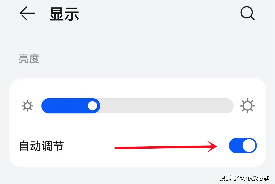 所以,我们需要把自动亮度调节开关打开,这样,就可以根据环境,自动调节屏幕亮度,既可以节省电量,还可以有效保护我们的眼睛!