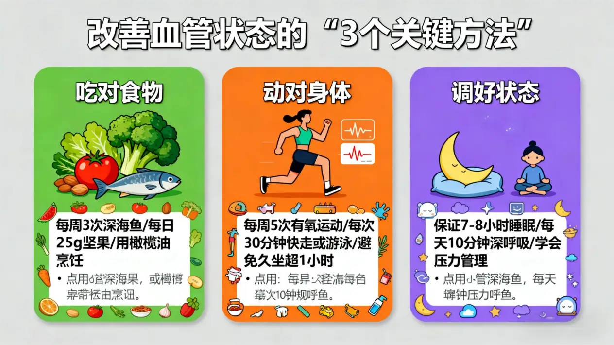 想要让血管“放松”扩张、改善微循环,不用依赖“特效手段”,做好这3件事,就能慢慢帮血管恢复弹性,给心脑充足供血。