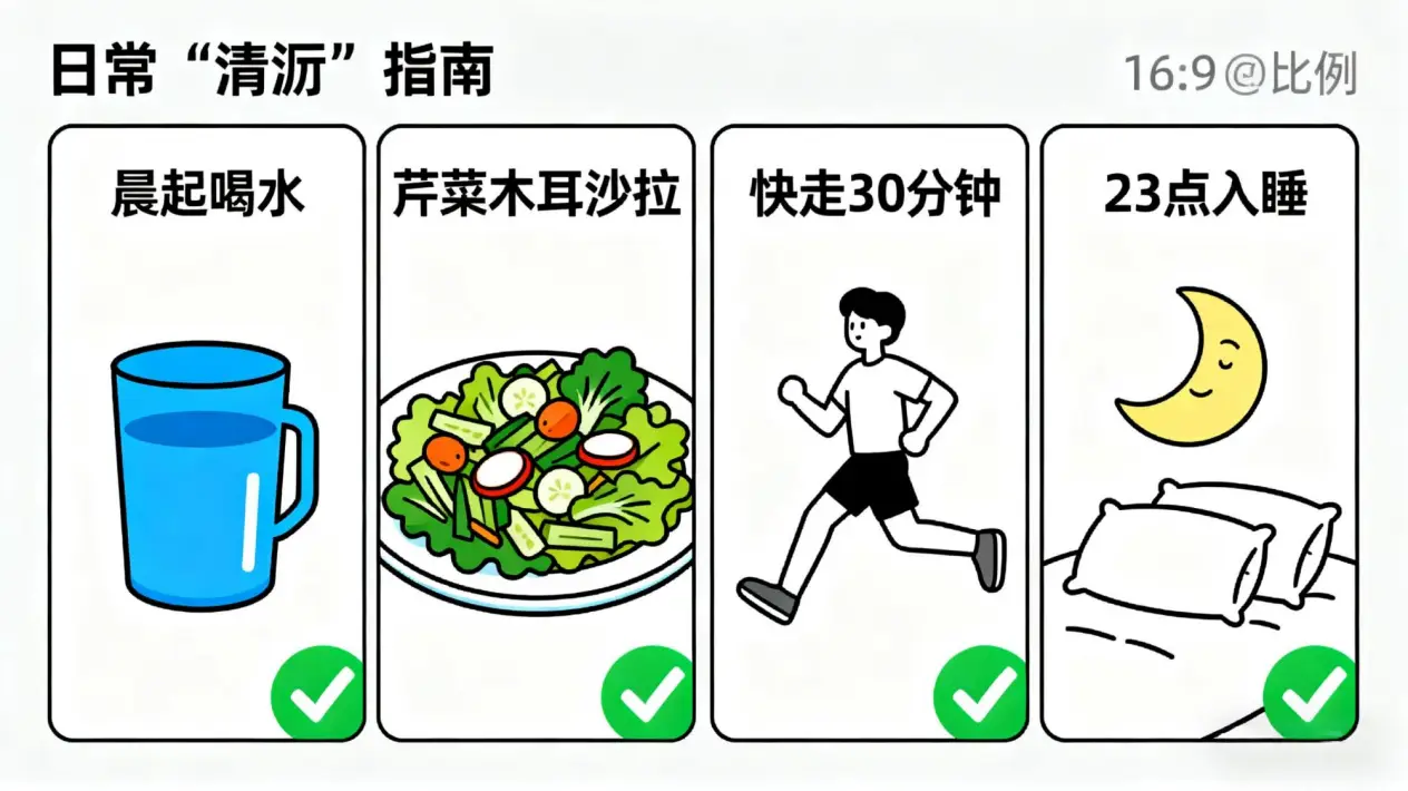 ·保证“优质睡眠”:尽量晚上11点前睡觉,每天睡够7-8小时。睡眠时身体会分泌帮助血管放松的物质,让血管在夜间“休息修复”;