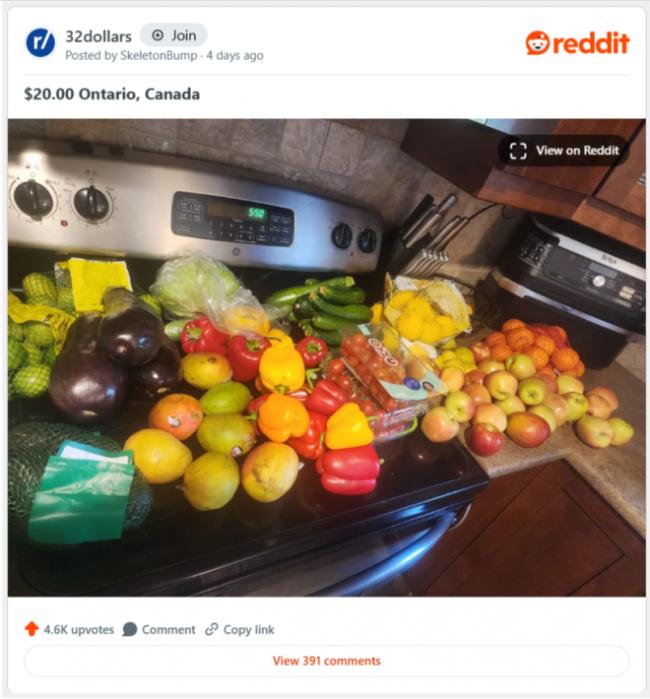 最近,Reddit用户 SkeletonBump分享了一张他在当地 Real Canadian Superstore购买的农产品的照片。