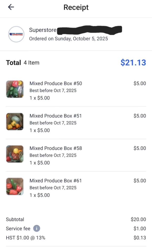 这名用户是从 Loblaw旗下的杂货店购买的农产品,但价格似乎有大幅折扣。