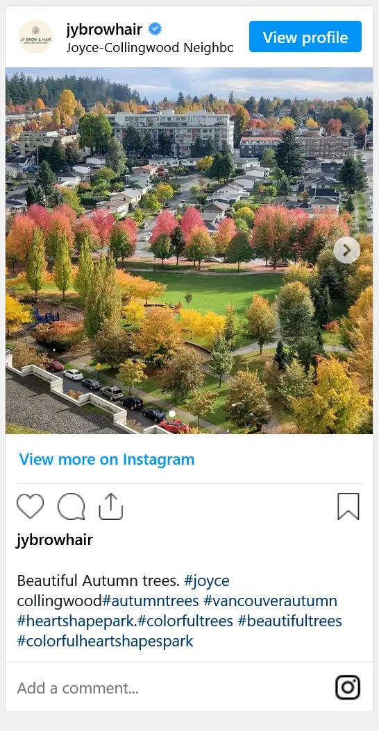 Aberdeen公园(Aberdeen Park)春天有可爱的樱花,秋天有美丽的红叶。如果您想一饱眼福,不妨到附近的其他街区看看,也有醉人的秋色哦。