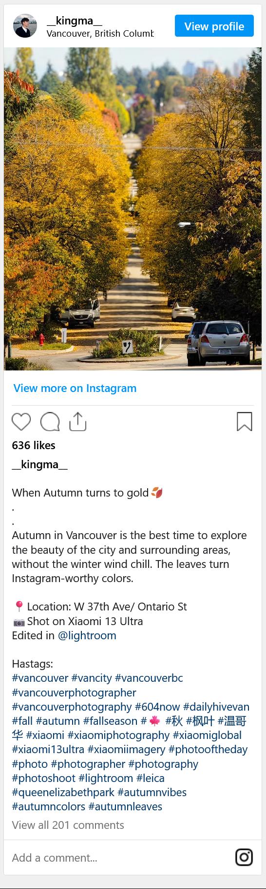 这条温哥华最著名的枫叶街红叶似火,每到秋季都吸引很多人前来打卡拍照。