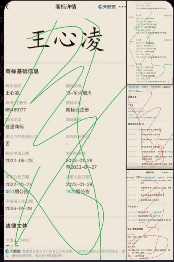 此前,男星郭俊辰,龚俊,著名歌手易烊千玺的名下也发现都注册了与军火、烟火相关的商标,内容特殊引发讨论。不少网友追问:到底有多少军火钱要洗?