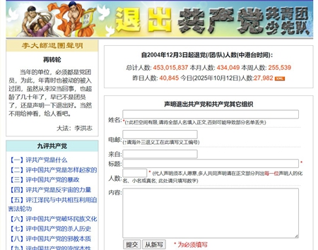 于朦胧坠亡案的背后黑幕,也引发大量中国民众震惊,因此纷纷在海外退!党!网站发表“三:退.声明”,宣布退出中共党、团、队组织。