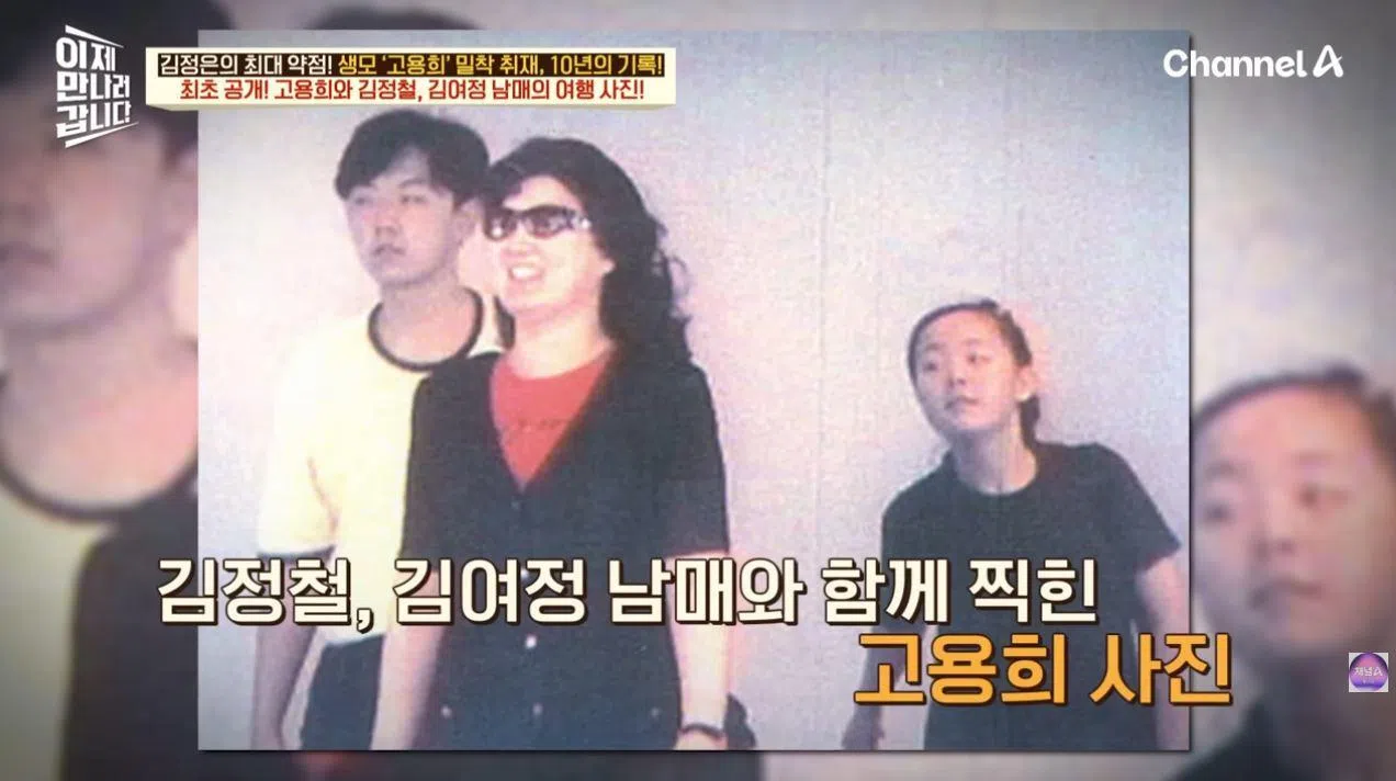 五味洋治在节目中公开高容姬(中)带儿子金正哲(左)和女儿金与正出国旅游的照片。(视频截图)