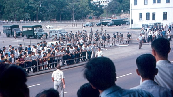 香港六七暴动,香港警察与示威者对峙街头。(图片来源:公有领域)