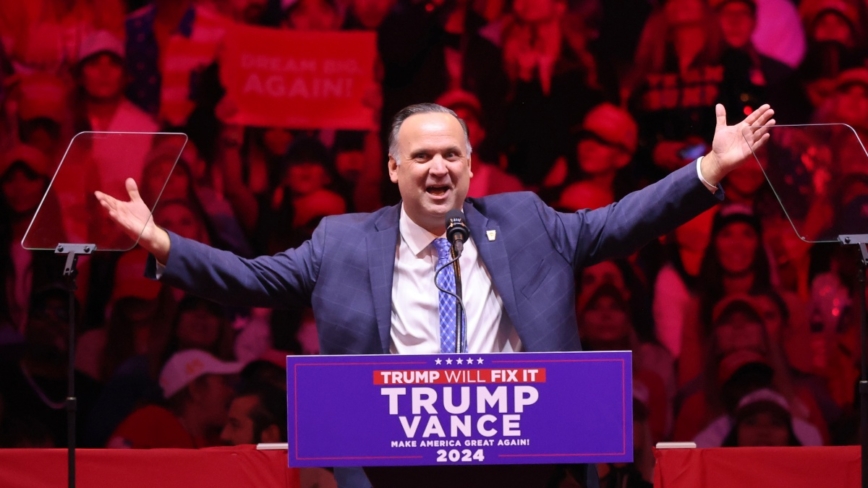 10月12日,川普总统宣布,白宫副幕僚长丹·斯卡维诺还将领导白宫总统人事办公室。图为丹·斯卡维诺在2024年10月27日于纽约市麦迪逊广场花园举行的竞选集会上发表演讲。( Michael M. Santiago/Getty Images)