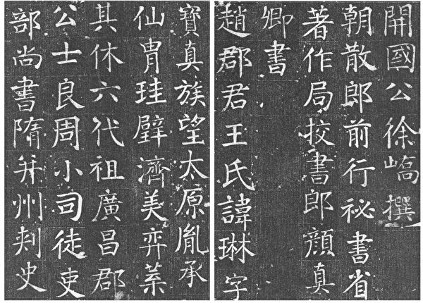 颜真卿楷书的顶峰之作《颜勤礼碑》局部拓片。(公有领域)