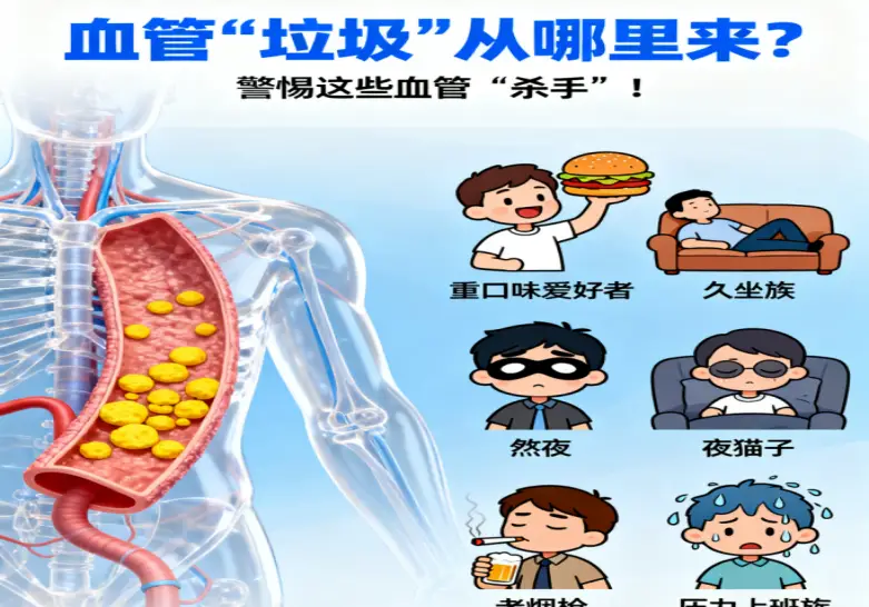 首先要明白,血管里的"垃圾"不是真的灰尘,而是血液中过多的脂质、糖分等物质长期沉积形成的斑块。就像水管里的水垢,日积月累,会让血管通道越来越窄。
