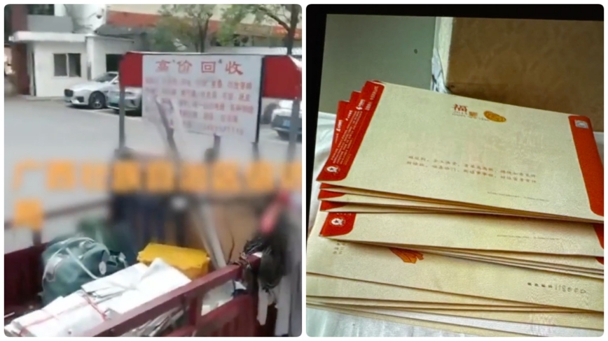 根据网传视频显示,一辆收废品的三轮车停在信访局的马路边,车边有成捆的纸质材料堆成小山,里面疑似有报纸、宣传海报,还有大量牛皮纸袋,有的已经装上三轮车。有访民看到,里面的信访材料都没开封,就被当作废纸卖掉了。